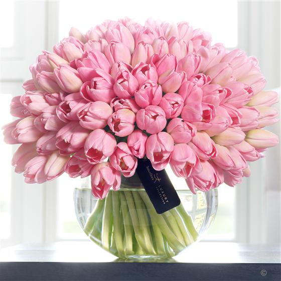 This beautifully feminine gift features an abundance of premium tulips in glorious pink. With such a generous number of tulips to enjoy, the wave of rich pink colour is even more pronounced, making this a stunning display of classic fresh flowers.
