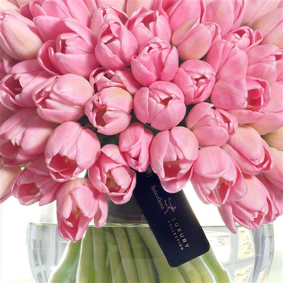 Featuring a luxurious display of the freshest pink tulips, expertly hand-tied and arranged in a clear glass globe, and presented in luxurious packaging for maximum impact when your gift is delivered.