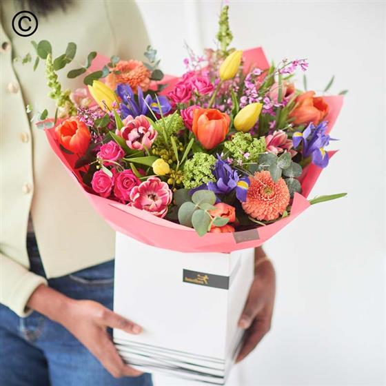 Please note that due to the seasonal availability of flowers it may be necessary to vary individual stems from those shown. Our skilled florists may substitute flowers for one similar in style, quality and value. Where our designs include a sundry item like a vase or basket it may not always be possible to include the exact item as displayed. If such an occasion arises we will make every effort to replace the item with a suitable alternative.