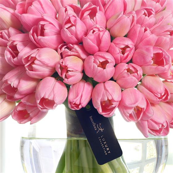 This beautifully feminine gift features an abundance of premium tulips in glorious pink. With such a generous number of tulips to enjoy, the wave of rich pink colour is even more pronounced, making this a stunning display of classic fresh flowers.