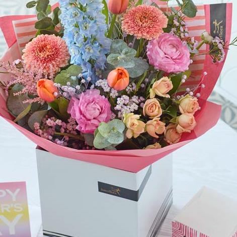 Treat mum to gorgeous blooms plus some lovely extras. She’ll get a gorgeous bouquet handcrafted by a local florist, plus delicious gourmet chocolates and a lovely full-sized card (the florist will pop your message inside). This year our Mother’s Day bouquets are all about gorgeous pastels with pops of colour. Expect to see blooms in shades of baby pink, cream, and lemon with bursts of cerise and tangerine, and highlights of pale blue and lilac.