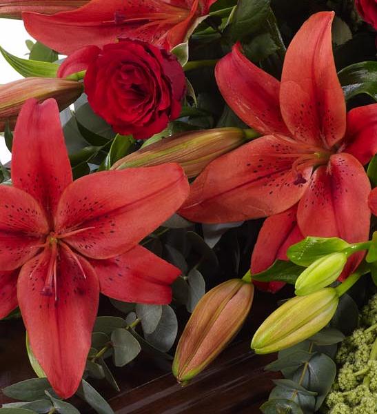 Lily and Rose Casket Spray - Red 4ft